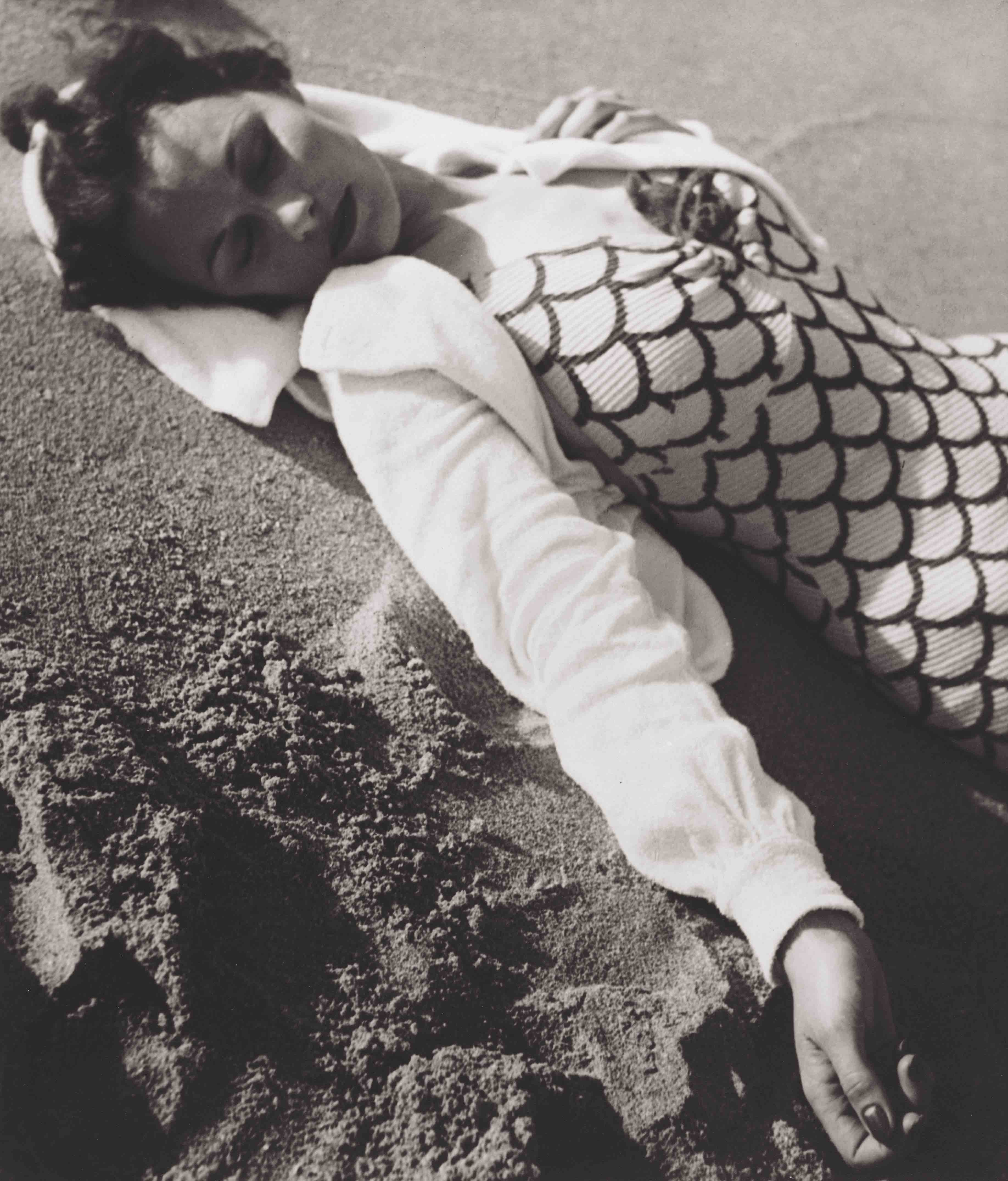 The model here is Phyl Riley. This shot was taken on Bungan Beach (Sydney) when Damien Parer and Max Dupain were photographing models in the new season’s beachwear for David Jones’s summer catalogue. I amused myself with my camera while Max and Damien attended to the serious demands of fashion photography.